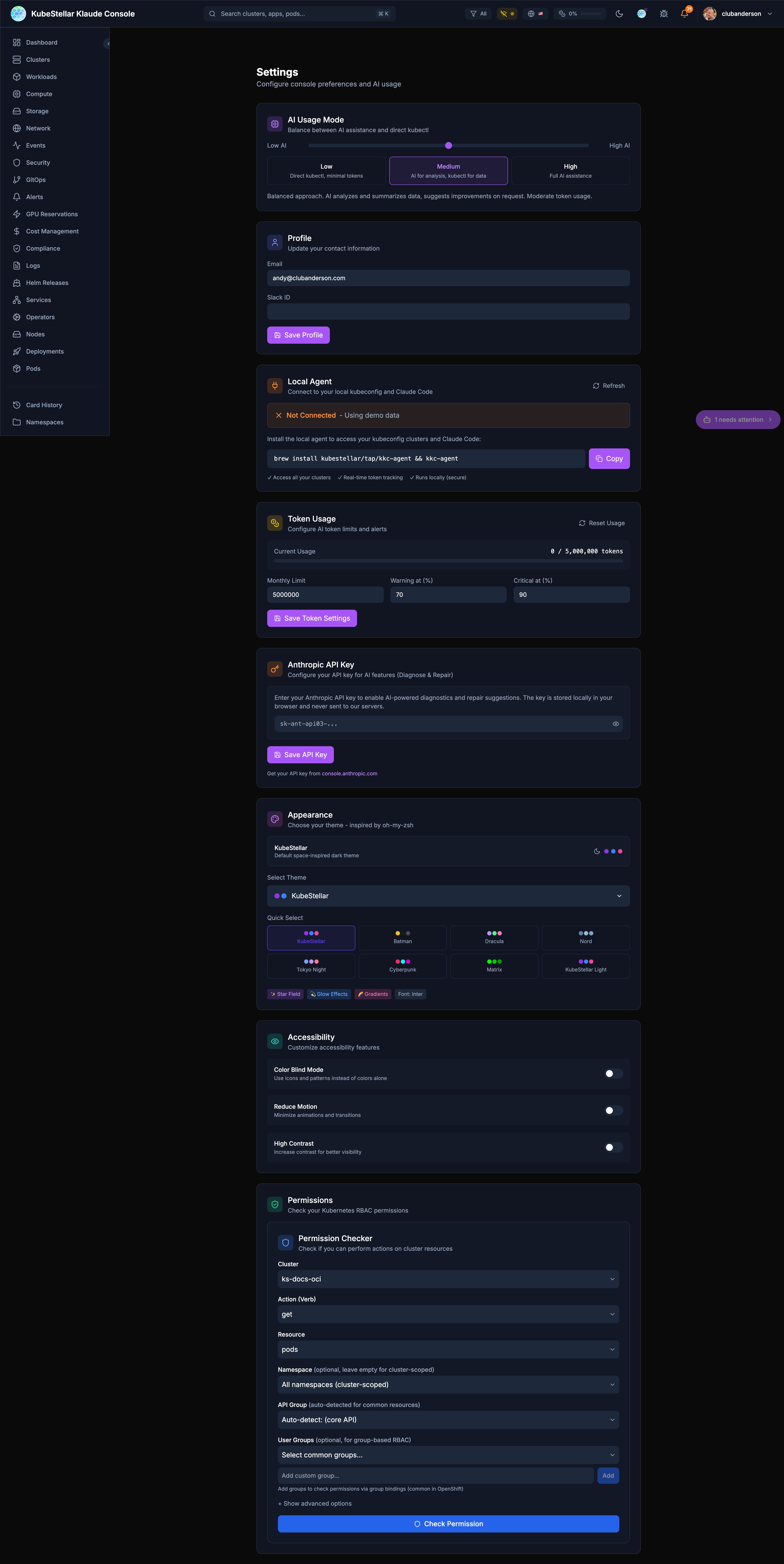 Stay informed about what’s happening in your clusters with configurable alerts. Plus, track and control your AI token usage.