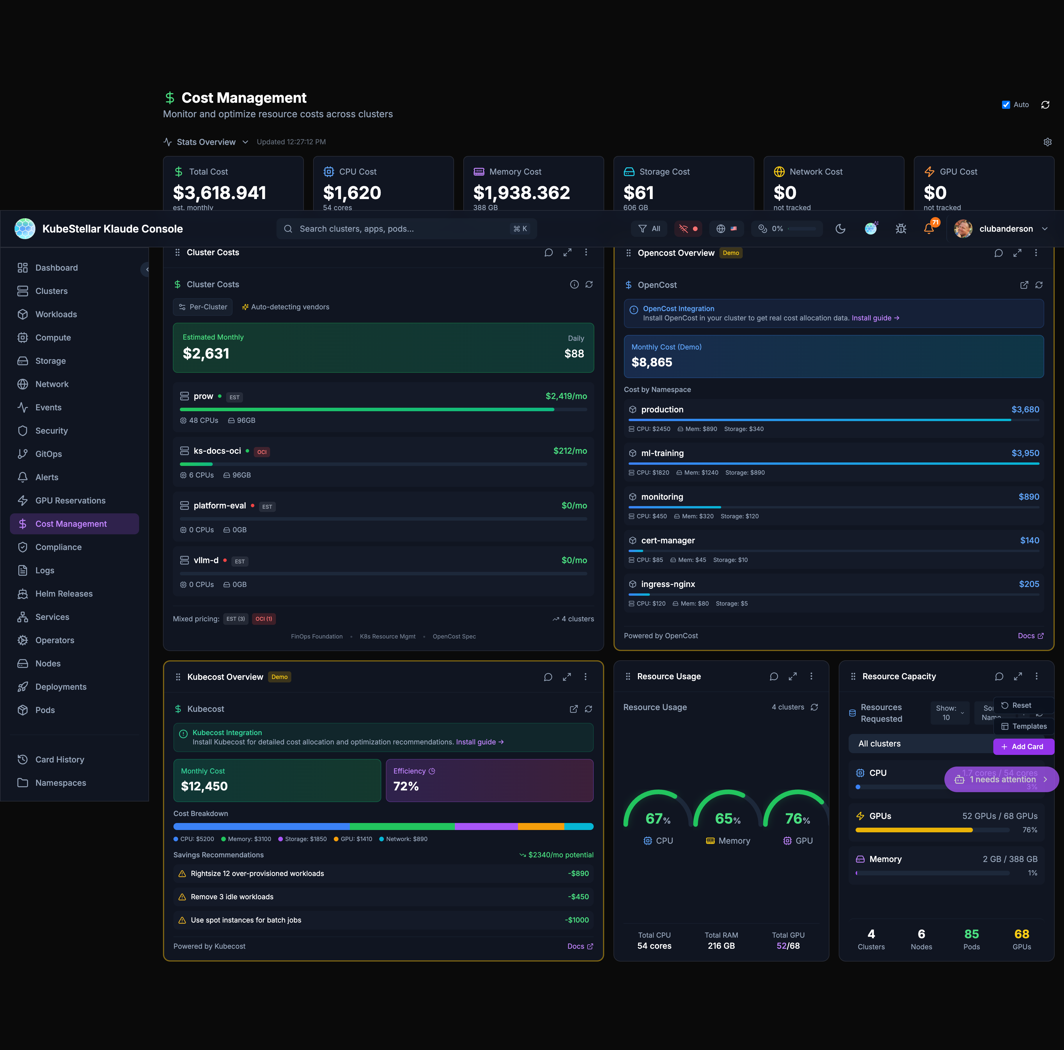 - Shows you everything happening across all your clusters in place